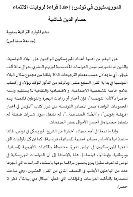 “The Moriscos in Tunisia: A Re-Reading of the Narrations of Belonging”, pp.151-197 (In Arabic)- "الموريسكيون في تونس: إعادة قراءة لروايات الانتماء" in Lotfi Aissa, Questioning Affiliation from the Perspective of the Tunisian Historical Investigation, Tunis, Kalima, pp. 151-197. في لطفي عيسى، مساءلة الانتماء من منظور المباحث التاريخية التونسية، تونس، كلمة للنشر والتوزيع، صص151-197.